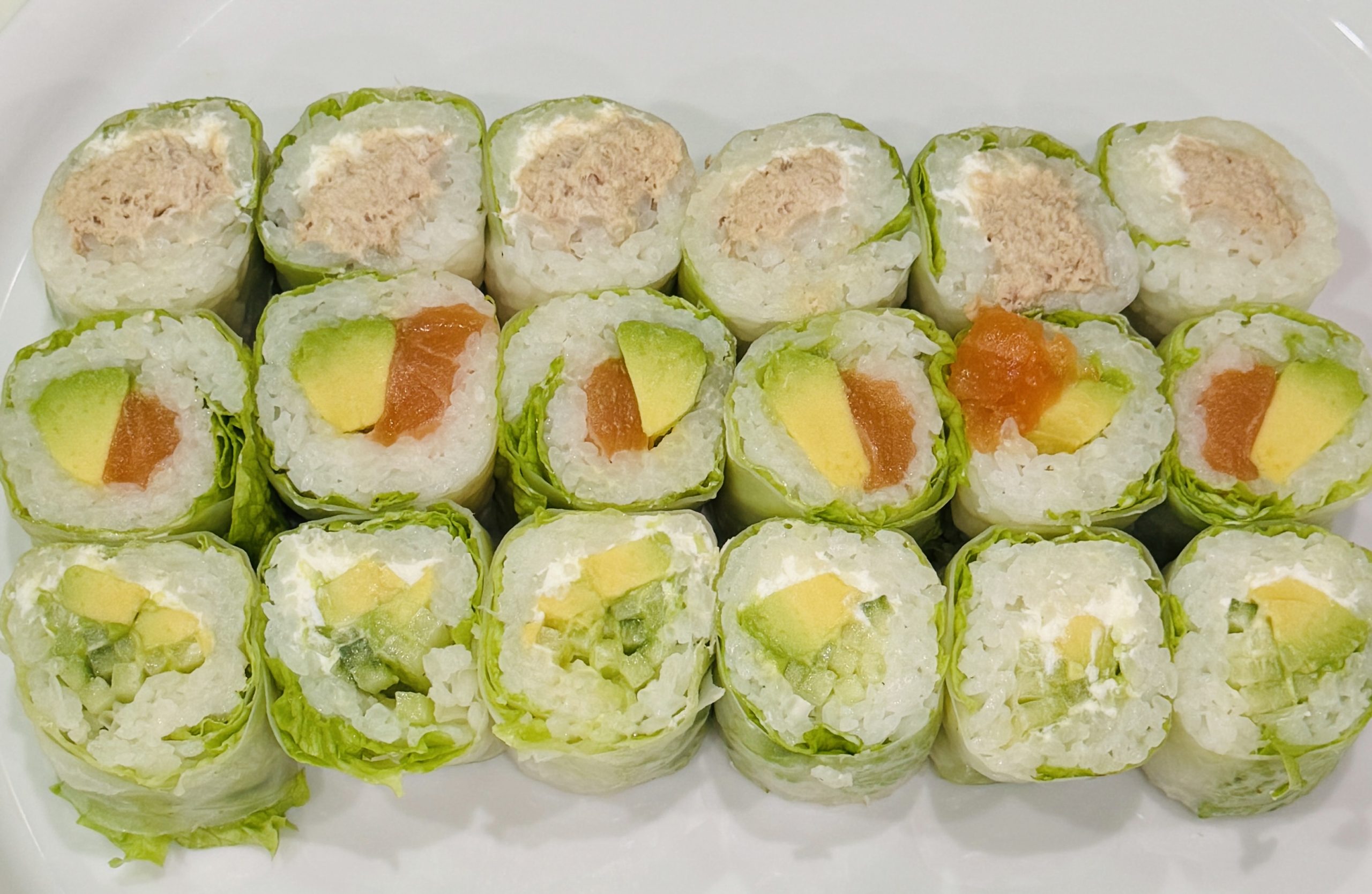 Menu F5**🎉🎉❤️🔥 2x Sushi 6x Crispy Chicken Avocat 6x Salman Rool Cheese 6x Maki Saumon Avocat 6x California Thon Cuit Avocat